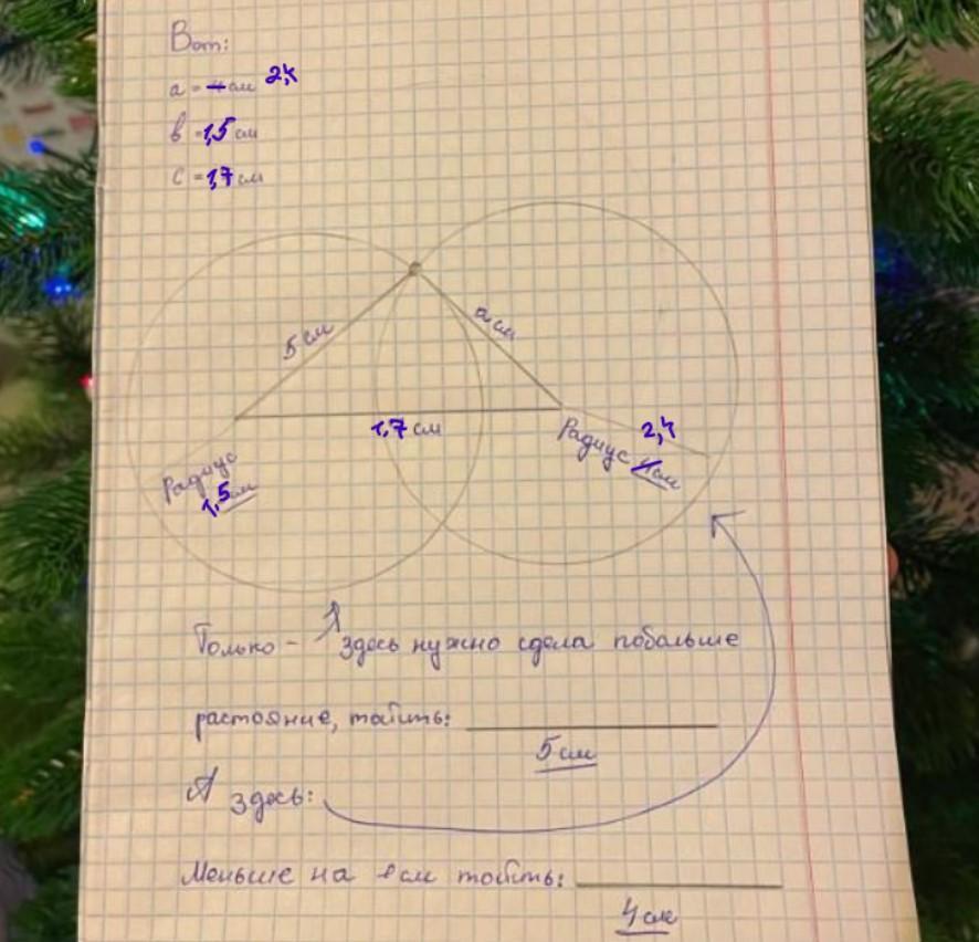 С помощью циркуля и линейки постройте треугольник со сторонами: 2,4 см, 1,7 см, 1,5см