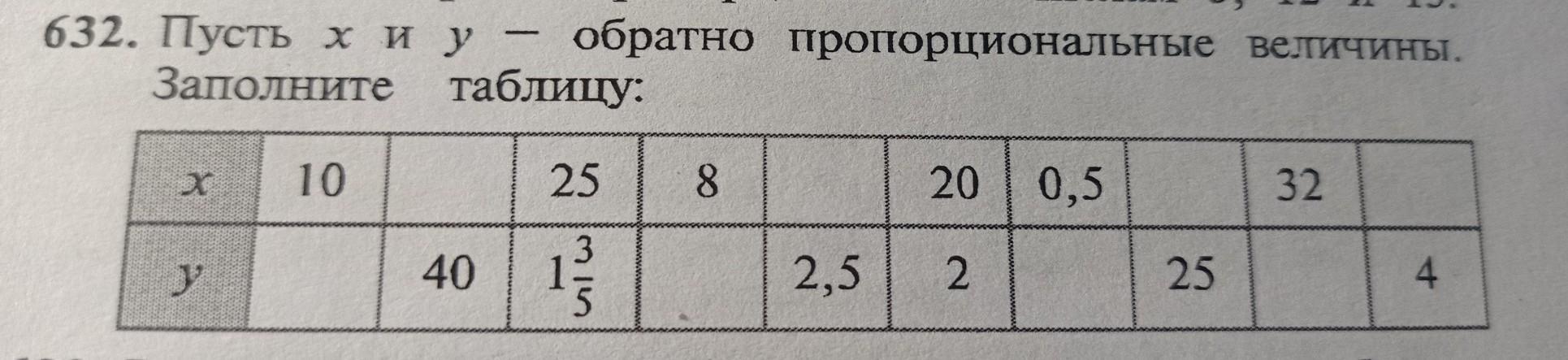 пусть х и у-обратно пропорциональные величины.заполните таблицу