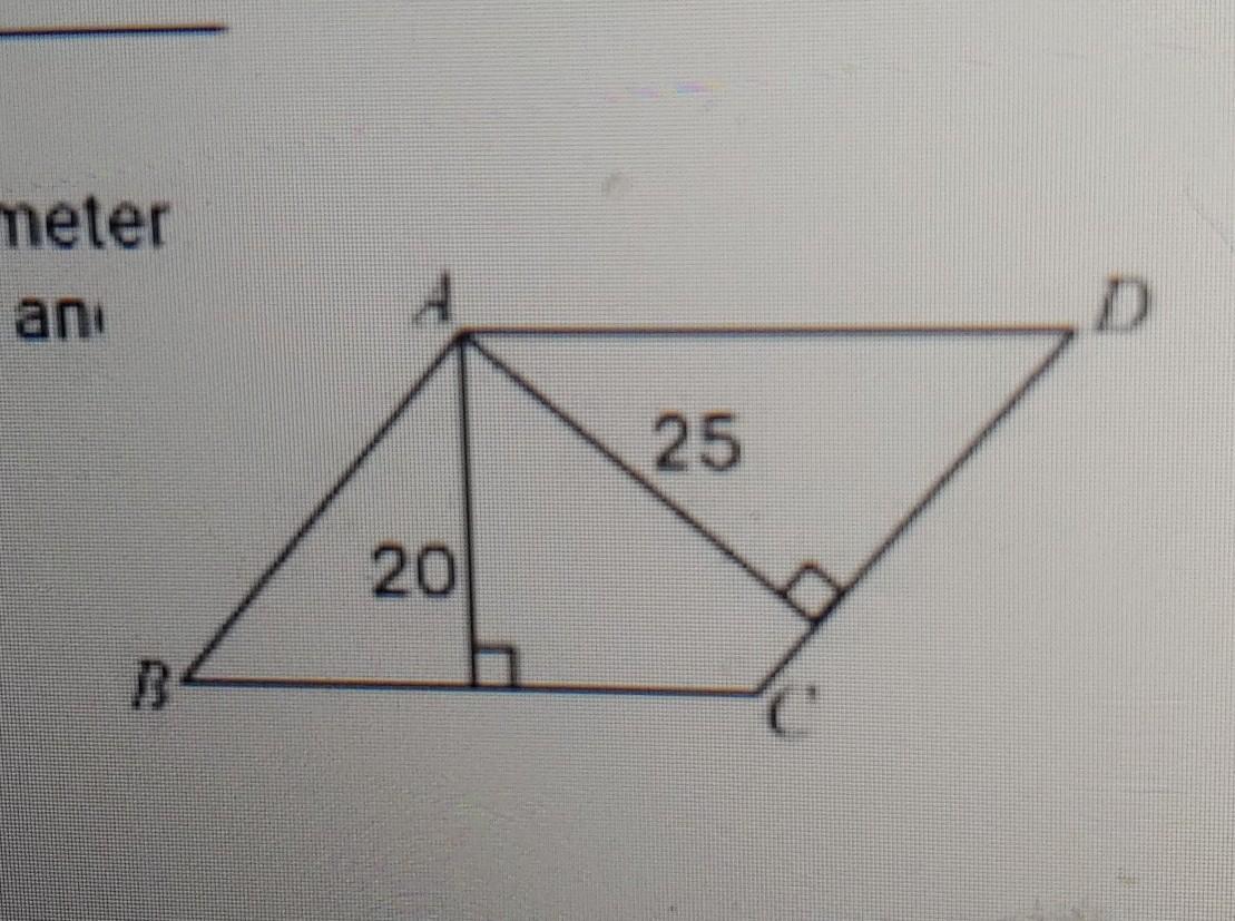 периметр параллелограмма ,который показан на картинке равен 180 см и 2 высоты равны 20 и 25 см.Найдите площадь ABCD