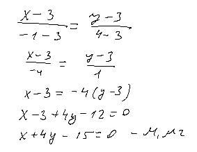 написать для прямойМ1М2 общее уравнение .еслиМ1(3,3)М2(-1,4)