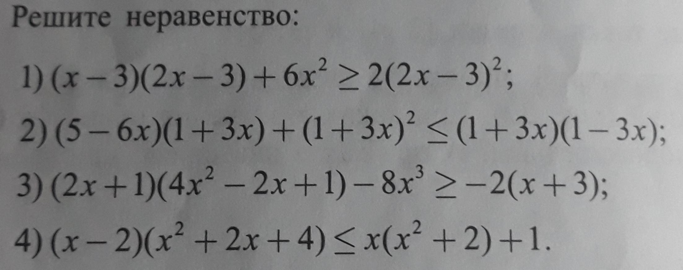 3) (2х+1)(4х²-2х+1)-8х³≥-2(х+3)