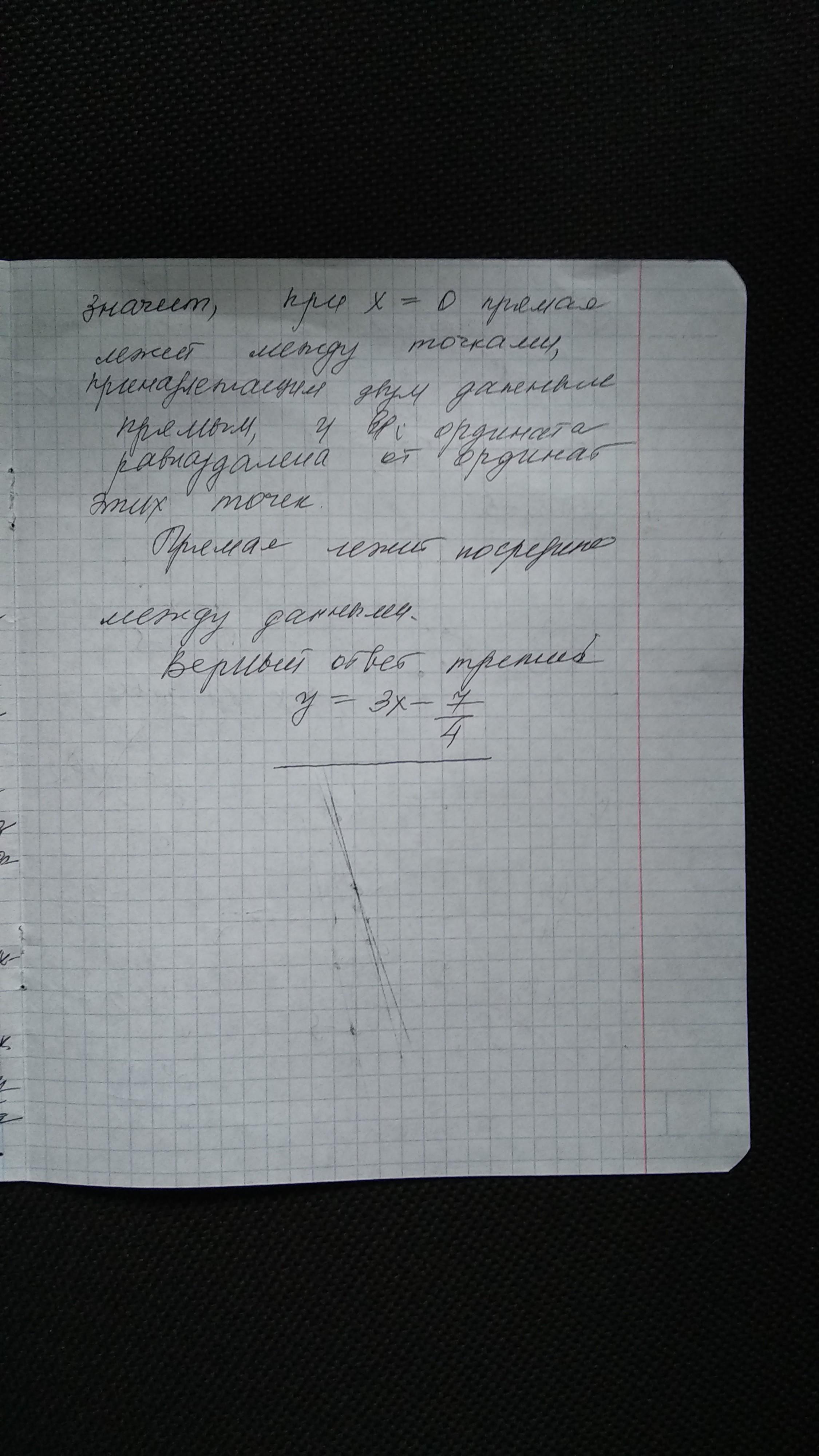 Значит точка, лежащая посередине между точками М₁ и М₂ , имеет ординату, равную . Тогда уравнение искомой прямой будет иметь вид: