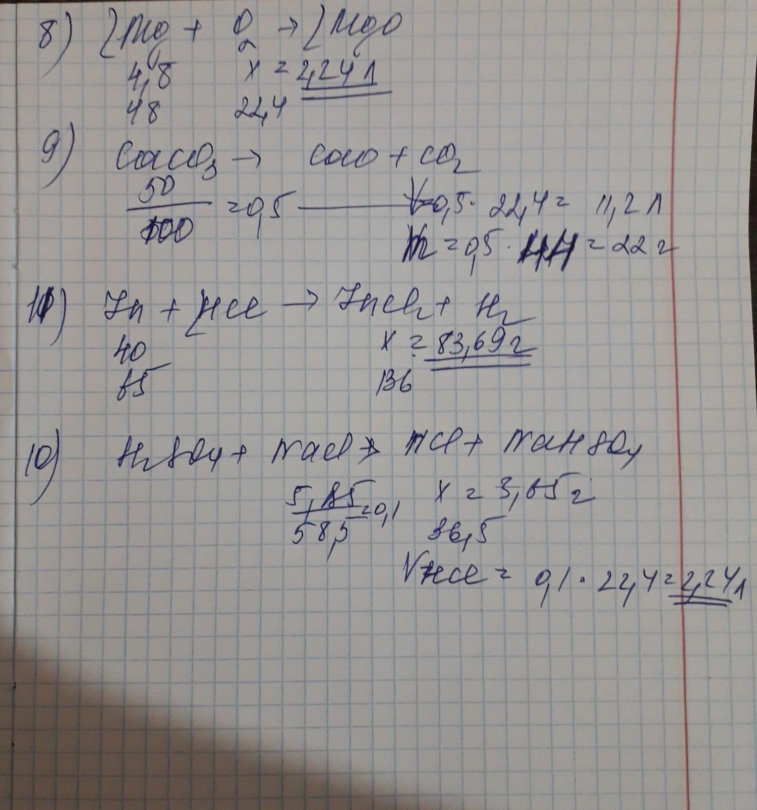 8. Рассчитайте объем (н.у.) кислорода, который необходим для полного сгорания магния массой 4,8 г. 2Mg + O2 = 2MgO