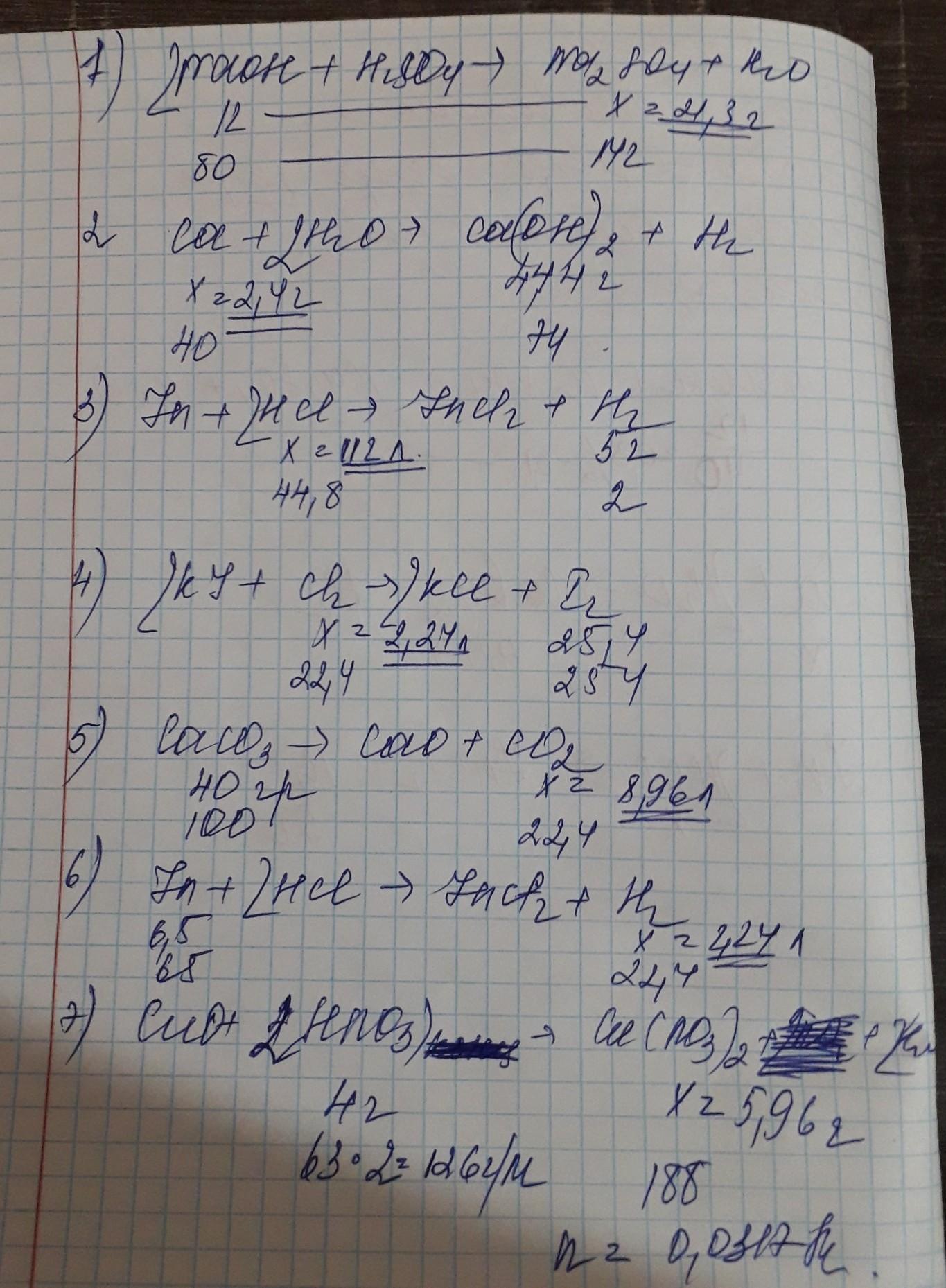 6. Рассчитайте объем водорода образовавшегося при взаимодействии 6,5 г. цинка с соляной кислоты. Zn+2HCl=ZnCl2+H2
