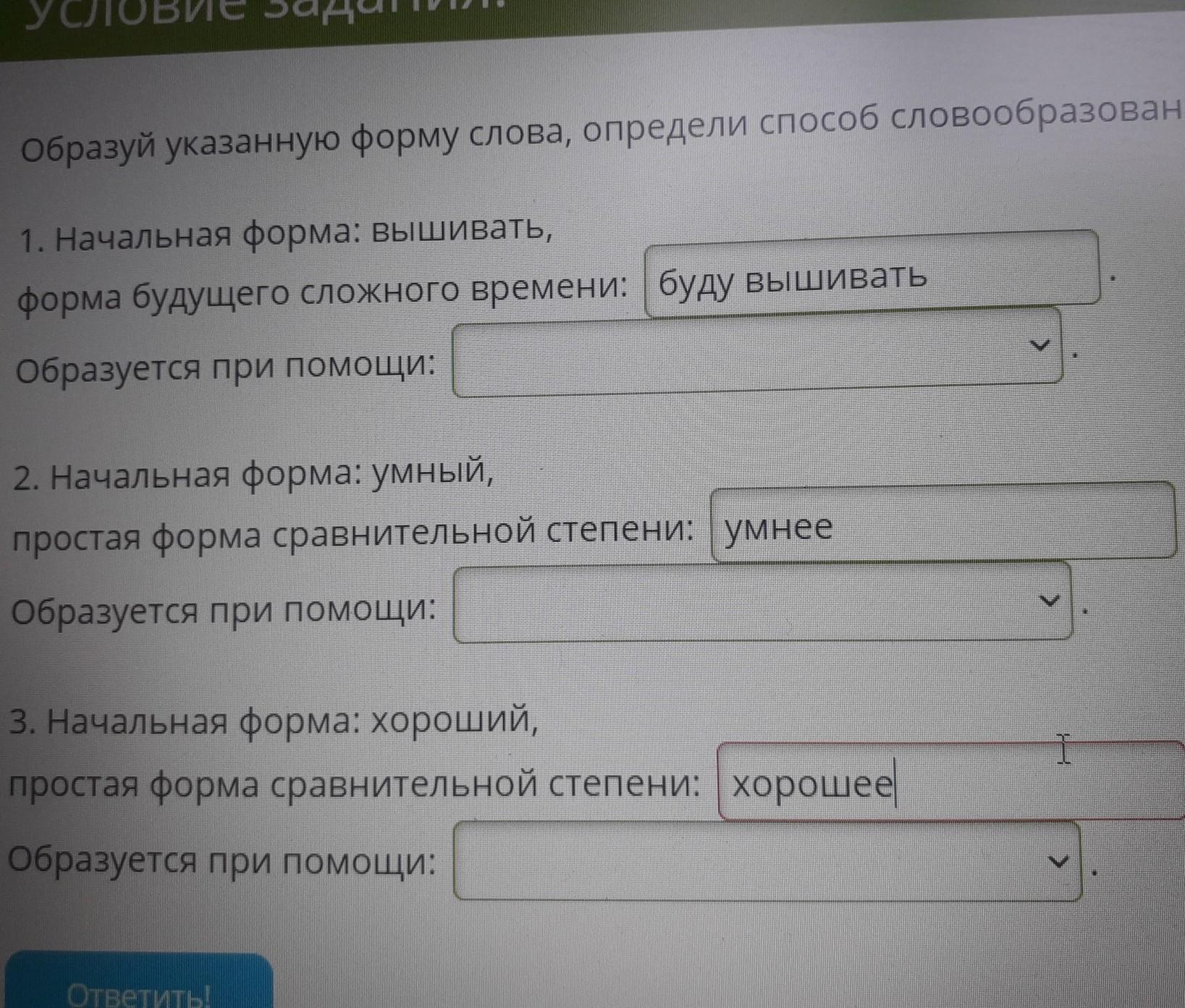 Образуется при помощи : другой основы : лучше