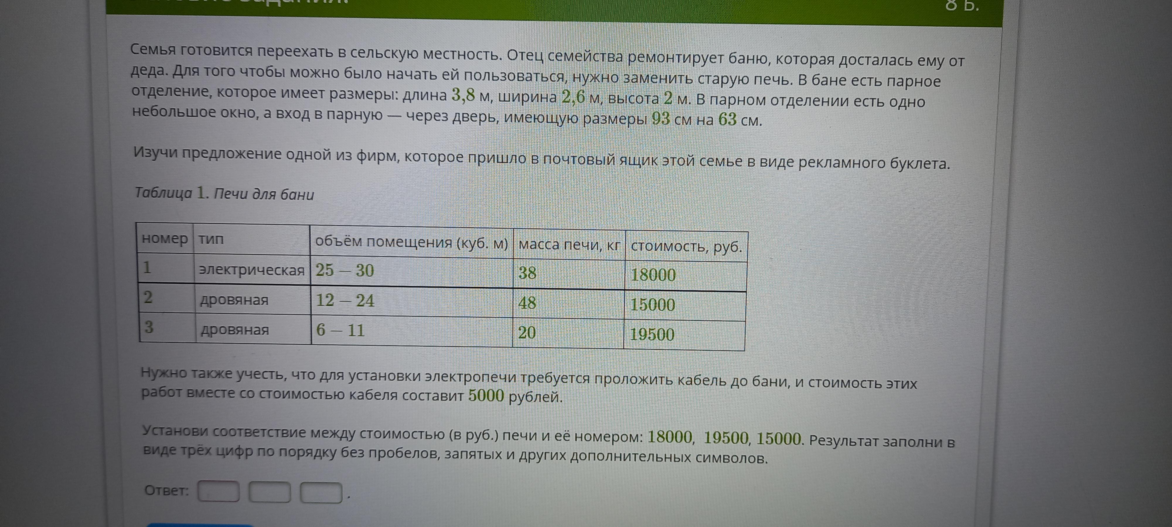 1 вариант - электрическая печь, стоит 18000, и для неё ещё нужно тянуть кабель за 5000. Всего 23000.