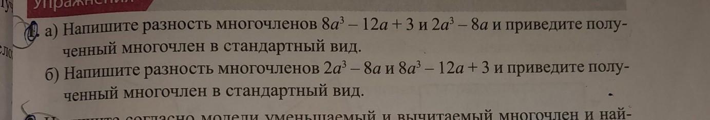 а) (8а³-12а+3)-(2а³-8а)=8а³-12а+3-2а³+8а=8а³-2а³-12а+8а+3=6а³-4а+3