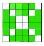 Какое наименьшее количество клеток в квадрате на рисунке нужно ещё закрасить, чтобы полученный рисунок имел 4 оси симметрии?