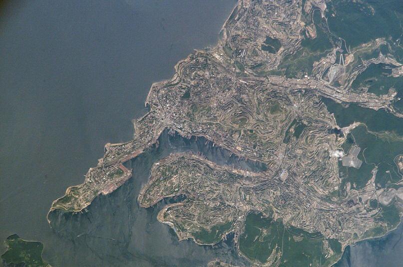 Перед вами фотография из космоса бухты на Дальнем Востоке России, по форме напоминающей одноимённый залив в районе Мраморного моря. Дальневосточная бухта так была названа только в XIX веке, в эпоху освоения, тогда как «оригинал» в районе Мраморного моря получил своё название ещё в эпоху античности. Вспомнив название бухты, выберите крепость, расположенную в городе, в границах которого находится «оригинал».
