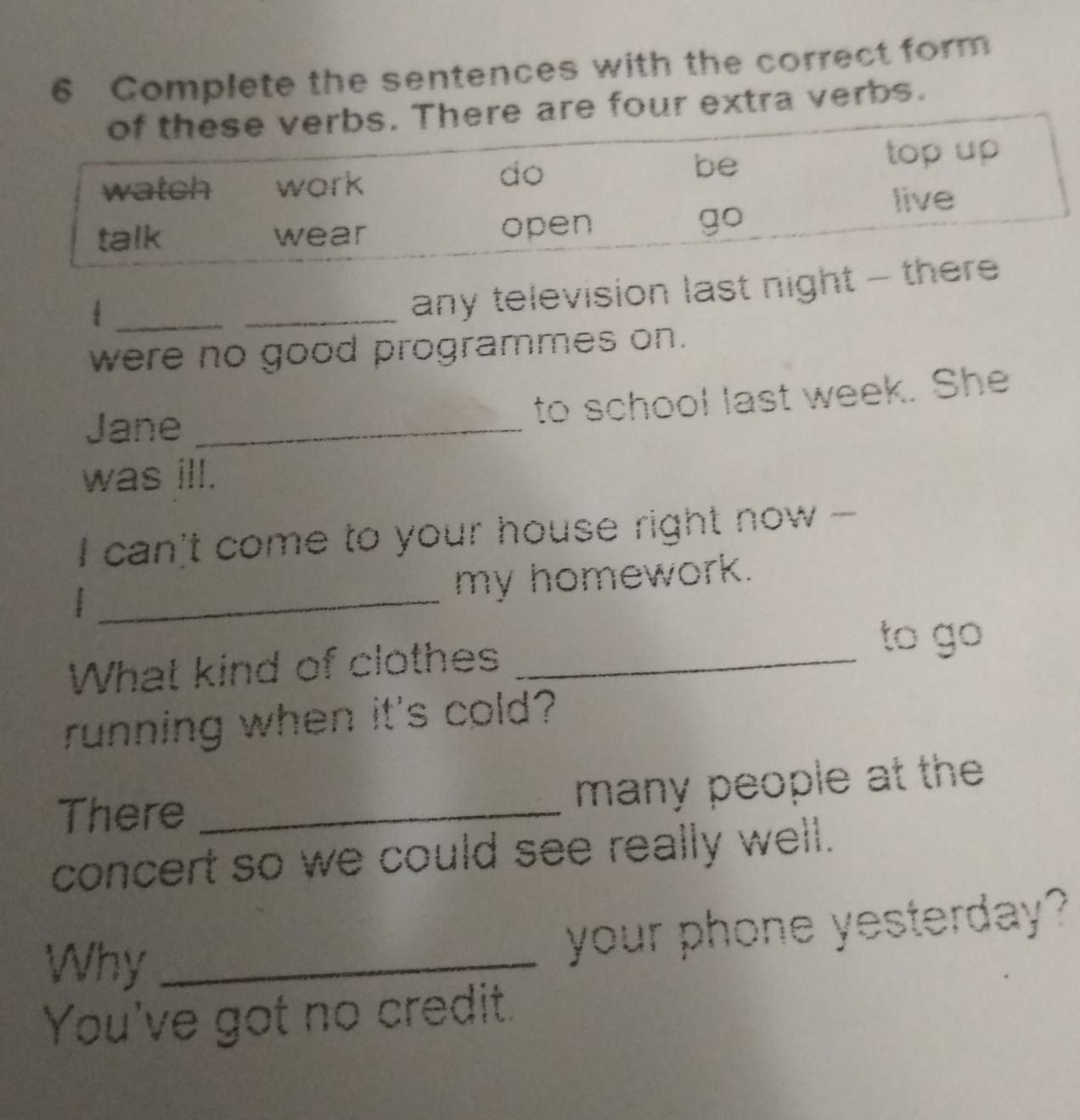 6) Why didn't you top up your phone yesterday? You've got no credit.