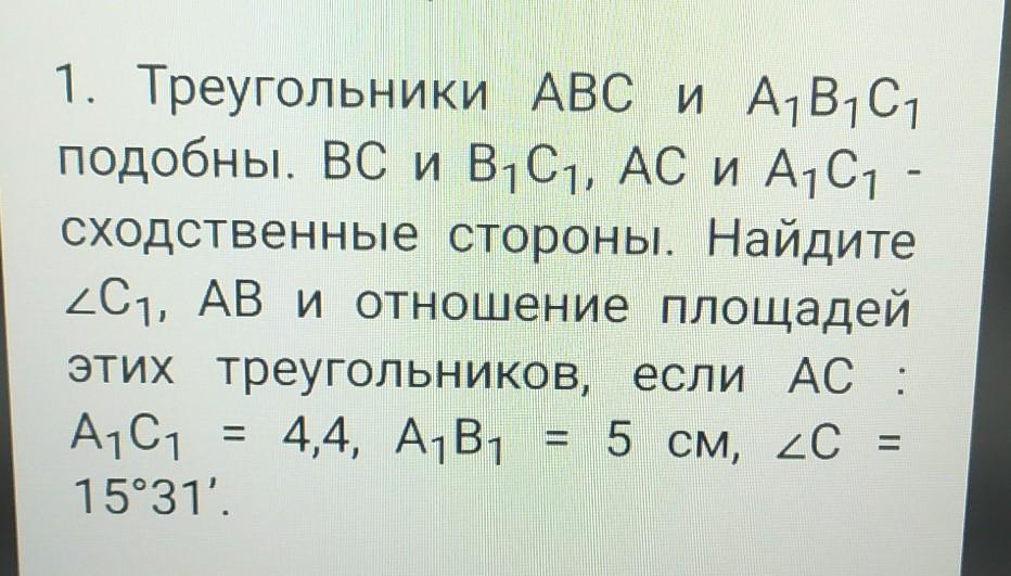 Так как треугольники подобные, то соответствующие углы равны →∠С1=∠С=15°31'