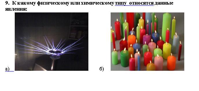 б) горение свечей относится к химическим явлением; плавление парафина при горении свеч - физические явления