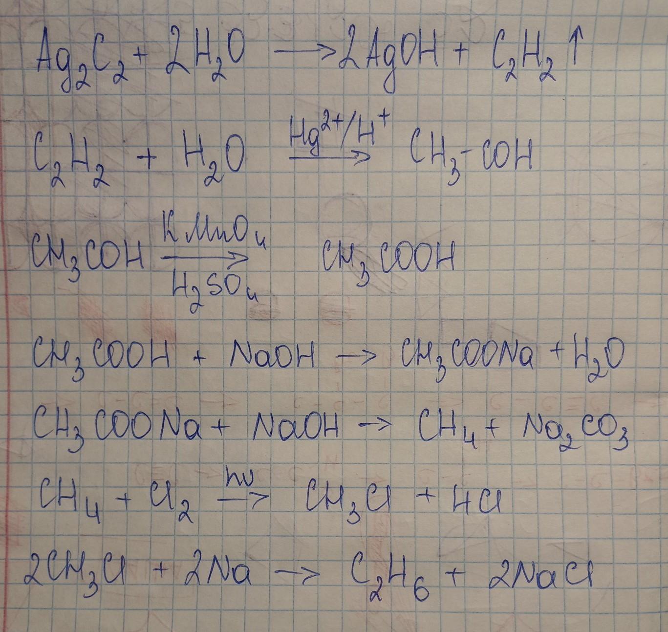 Так всё получается в одну стадию. Но вот получение этана из ацетата натрия в одну реакцию не сделаешь. Поэтому либо в условии должен стоять метан и можно заканчивать на его получении. А если всё правильно, то нужно ещё провести реакцию Вюрца