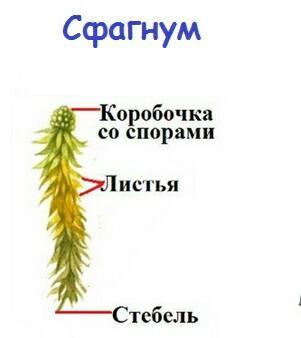Строение сфагнума. Мертвые клетки, способные накапливать воду. Коробочка- BETBUT с листья-чешунками. Живые клетки, содержащие хлорофилл стебель.
