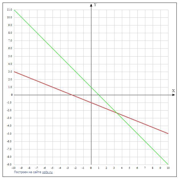 Постройте линеарную функцию на графике (на одной координатной плоскости), если y= -0,4x - 1 и y= -x + 1.