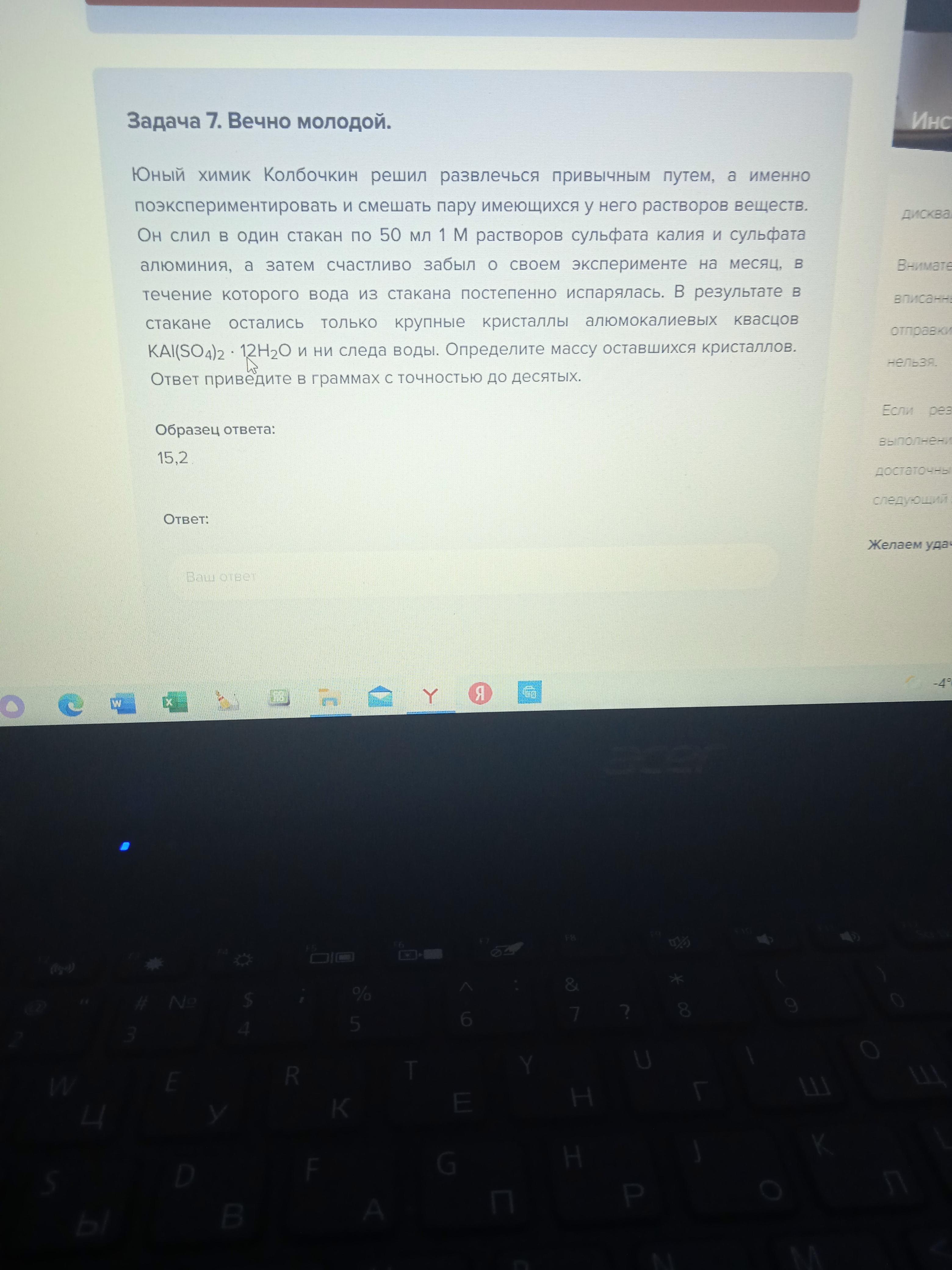 Следовательно количество вещества образовавшегося кристаллогидрата в два раза больше чем количество вещества K2SO4 или Al2(SO4)3.