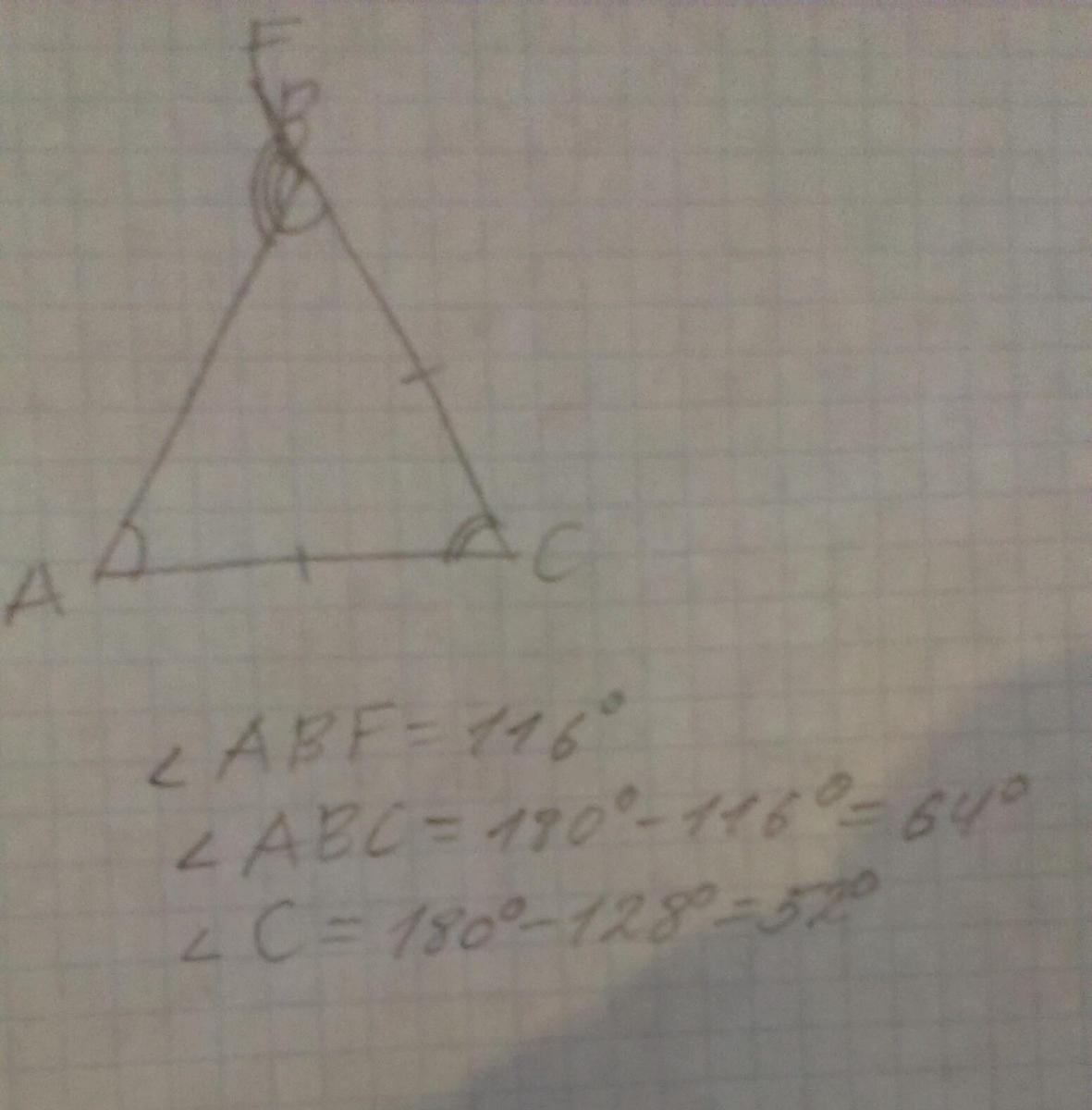 в треугольнике abc стороны ac и bc равны внешний угол при вершине b равен 116 градусов найдите угол c ответ дайте в градусах