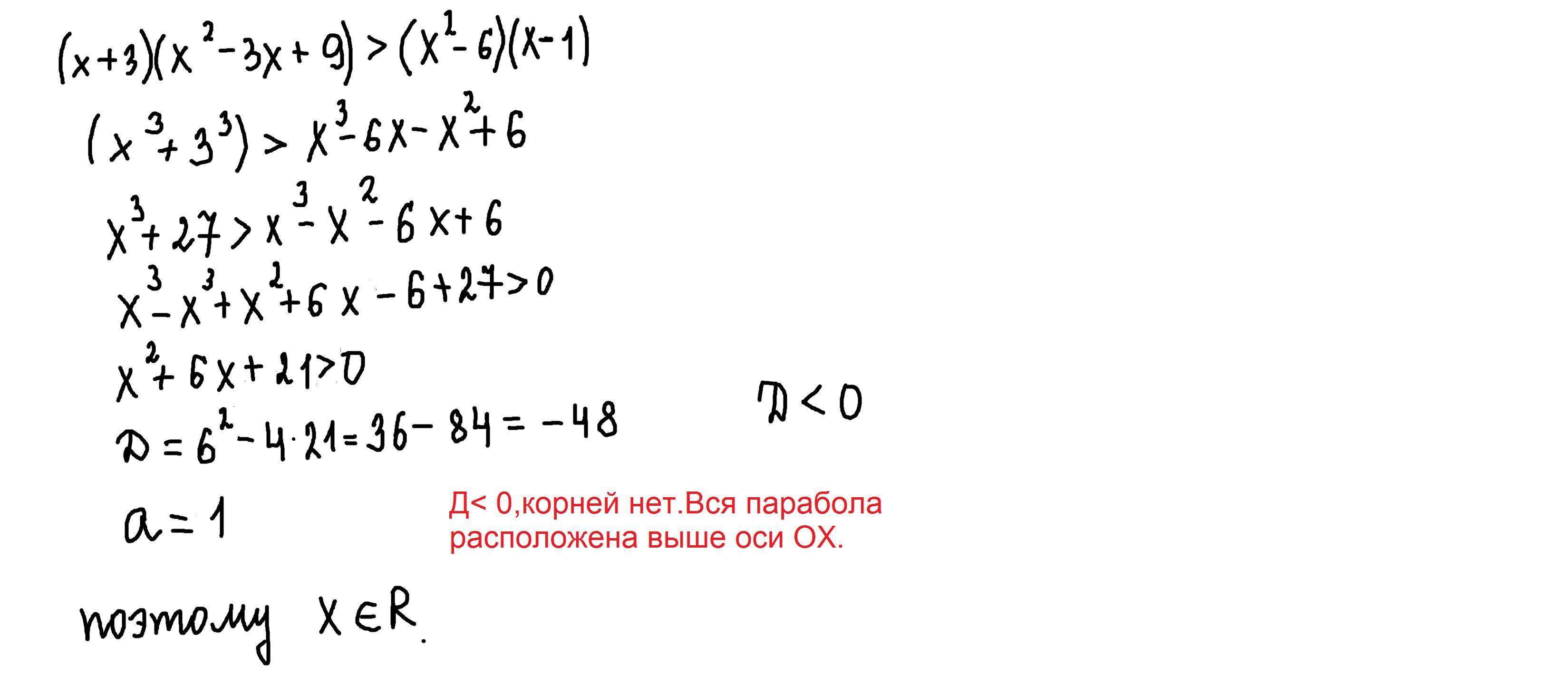 решенм кв.неравенство,получаем Д<0,значит уравнение корней не имеет,т.к а=1,ветви параболы направлены вверх,то при любом значении Х∈R неравенство больше 0.