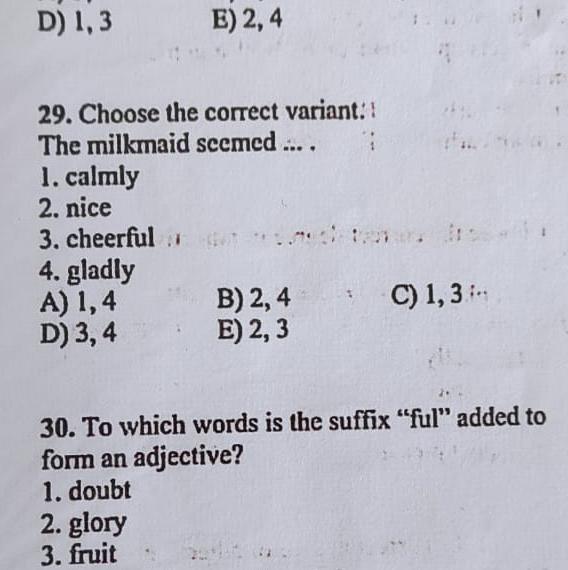 29. Е (nice, cheerful)