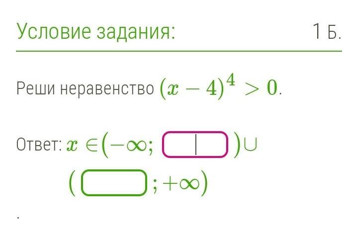 Левая часть этого неравенства больше 0 при любом x не равном 4.