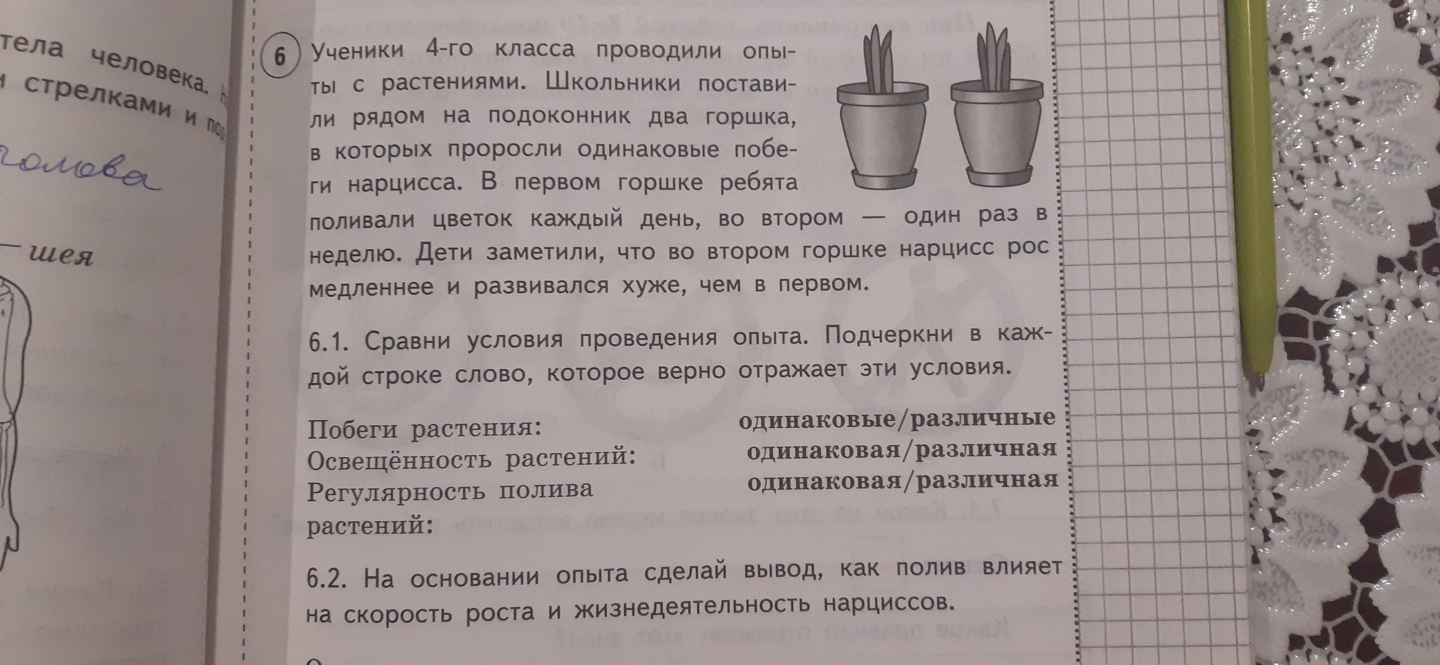 6.3.Если бы ученики захотели выяснить,как влияет освещённость на скорость роста и жизнедеятельности нарцисов, с помощью какого опыта они могли бы это сделать? Опиши этот опыт.