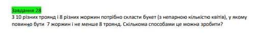 З 10 троянд вибрати 8 можна 45 способами, а 10 троянд - 1 способом