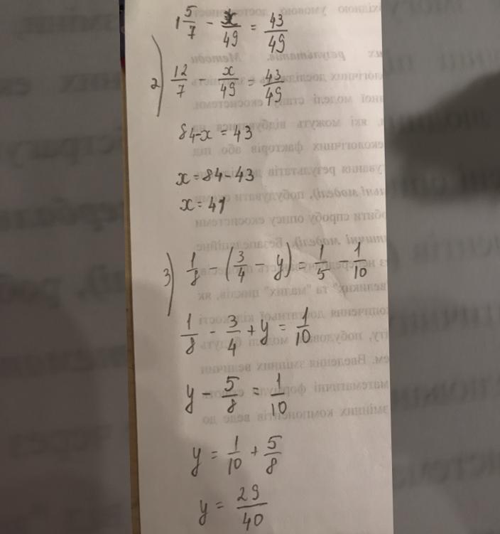 3) 1/8 - (3/4 - у) = 1/5 - 1/10