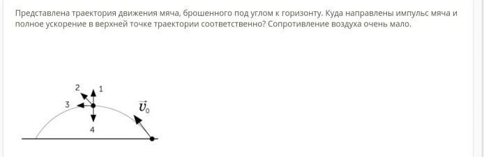 В верхней точке траектории вертикальная составляющая скорости равна нулю. Горизонтальная составляющая скорости имеет направление 3. Следовательно импульс