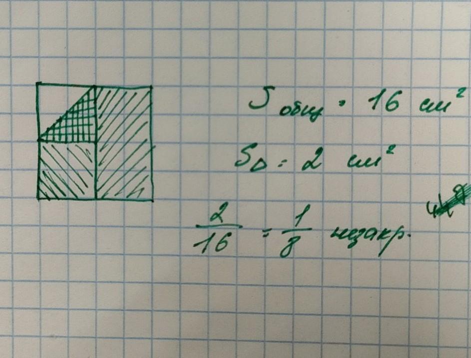 квадрата и закрась один из них синим цветом. Другой квадрат раздели на 2 равных треугольника и закрась один из них зелёным цветом. какая доля большого квадрата осталась незакрашенной