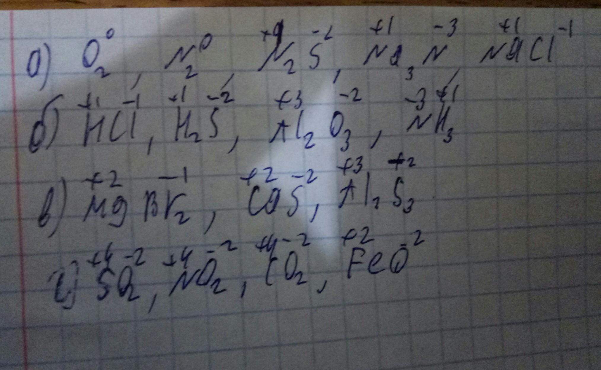 а) O2 - 0, N2 - 0, N2S (+1 и -2), Na3N (+1 и -3), NaCl (+1 и -1)