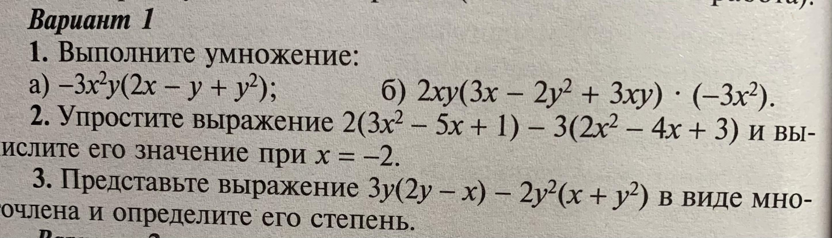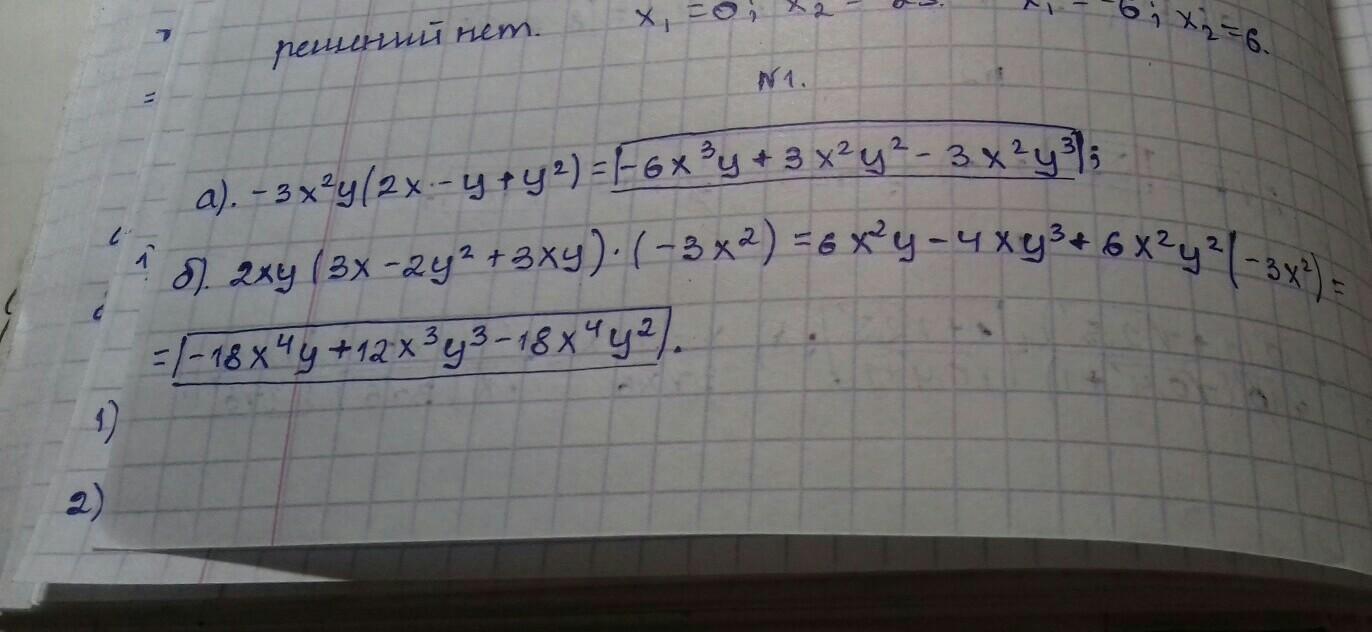 б)(6x*2y-4xy*3+6x*2y*2)×(-3x*2)=-18x*4y+12x*3y*3-18x*4y*2