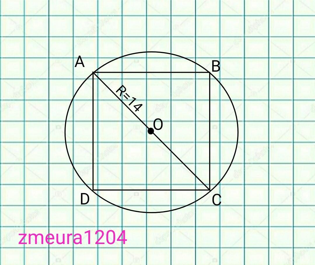 AC=2*R=2*14=28ед. диаметр окружности и диагональ квадрата.