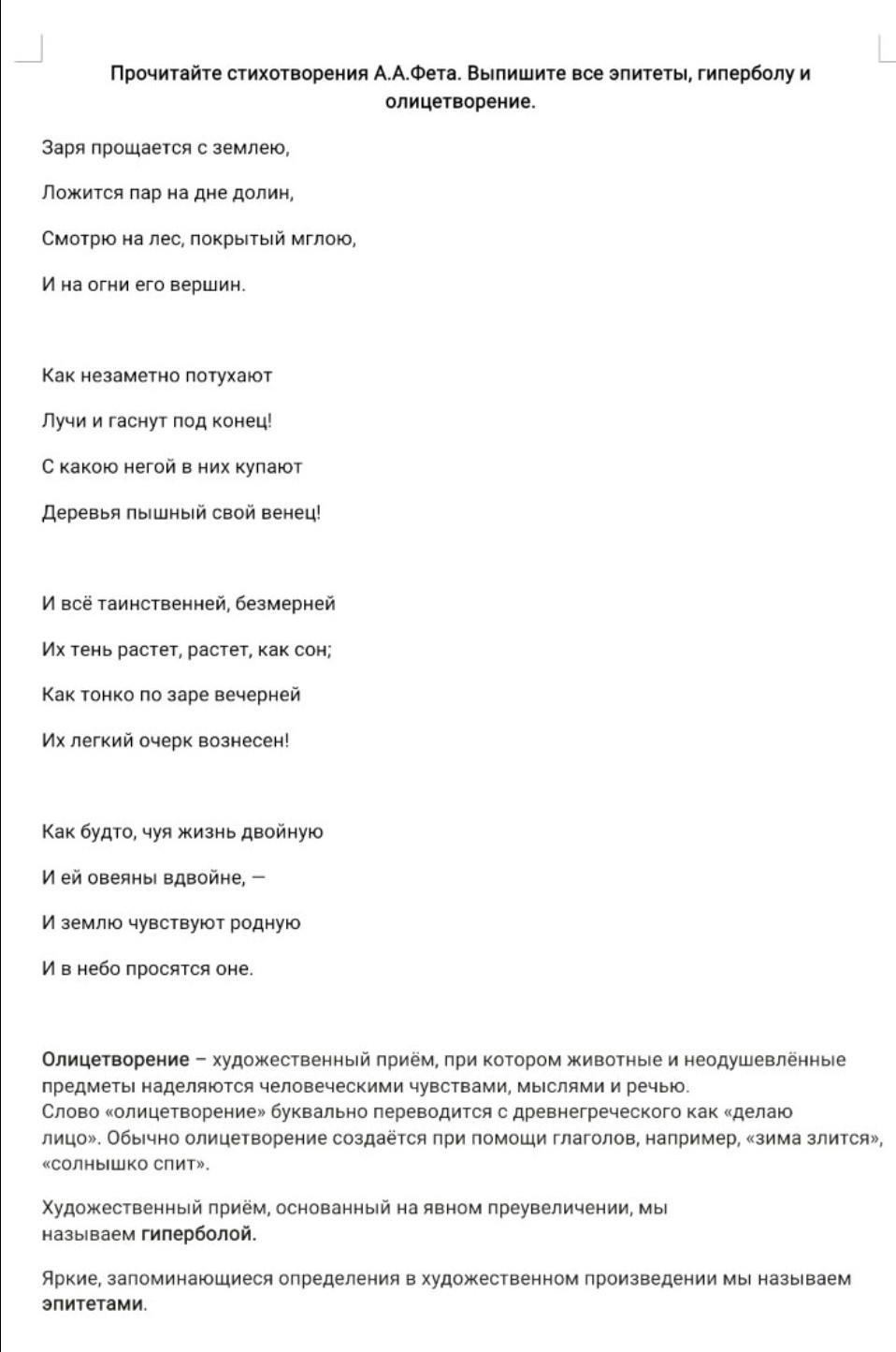 “заря прощается с землёю“, “купают деревья пышный свой венец“