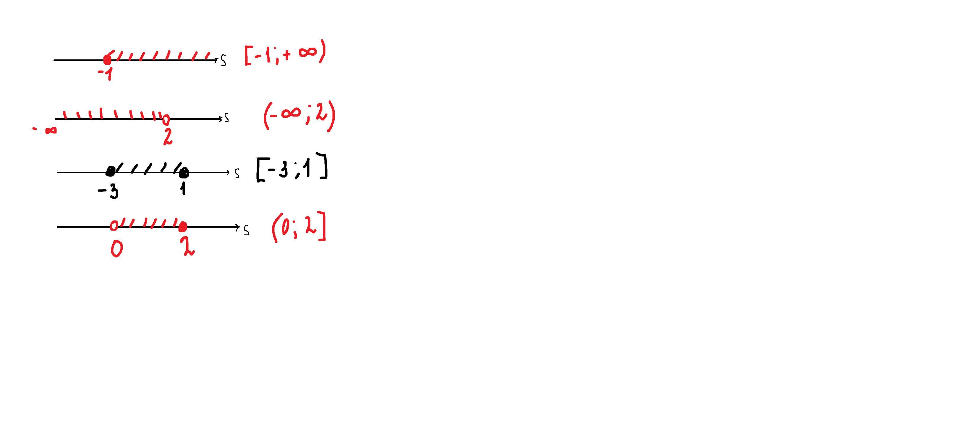 Пошаговое объяснение:если неравенство строгое(< >) ,то точки не закрашены и скобки круглые.при ±∞ скобки всегда круглые.( )