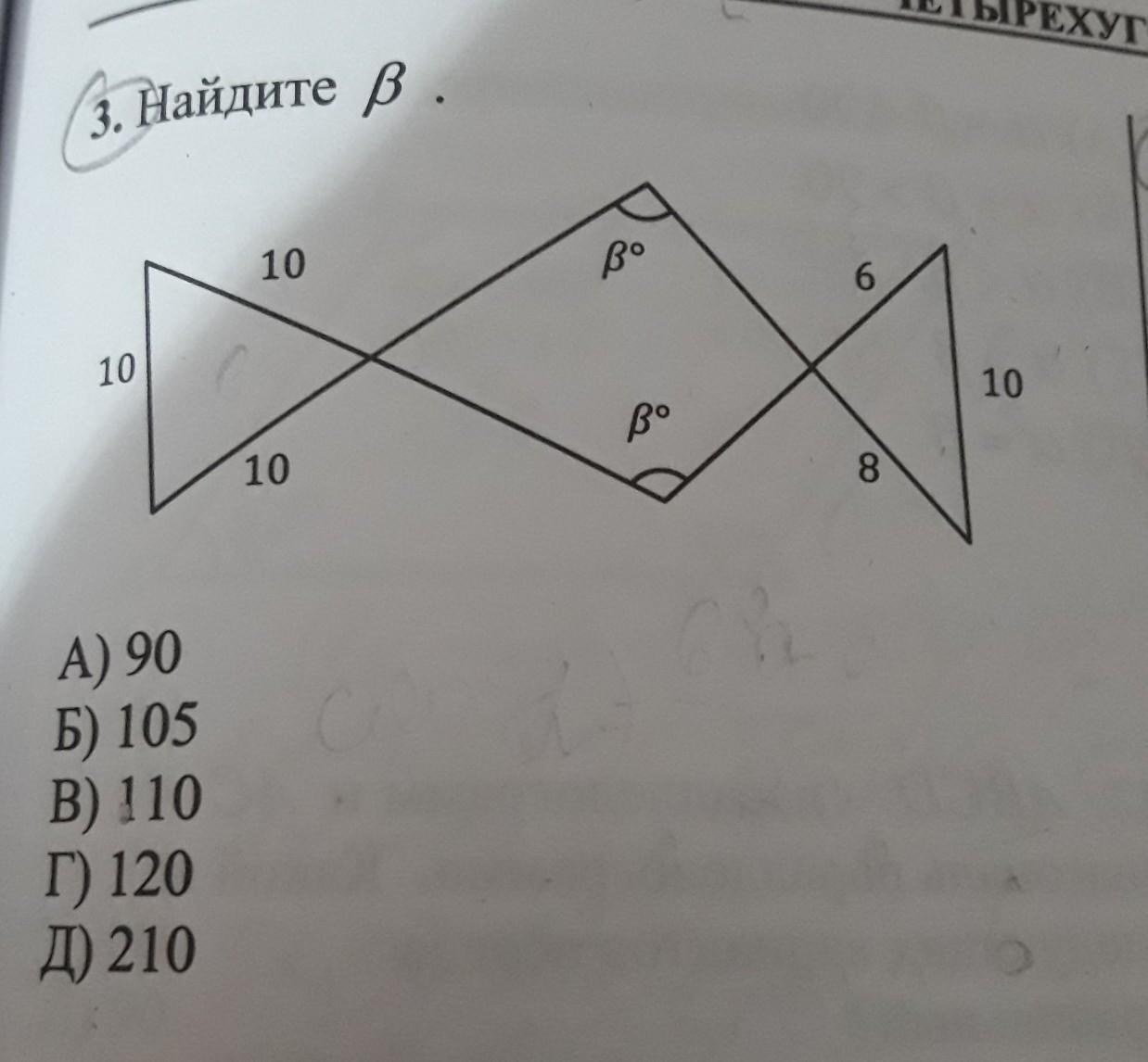 Ответ: β = 210/2 = 105 градусов.
