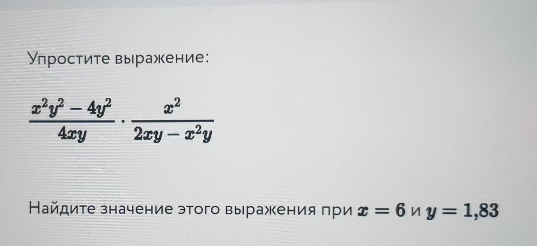 Упростите выражение: т?у? — 42 4ry 2 2xy — т?у - Найдите значение этого выражения при t = 6 и y = 1,83