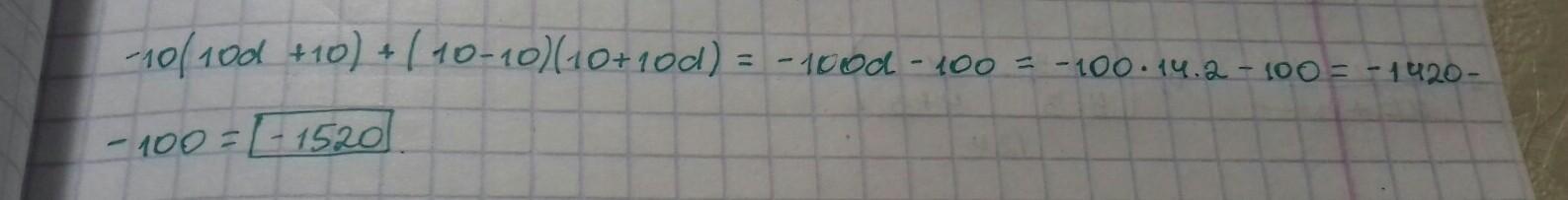 Упрости выражение и найди его значение при d = 14,2. -10(10d +10) + (10 – 10) (10 + 10d). Срочно