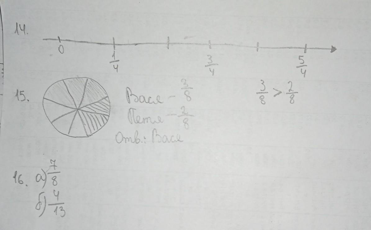 15. Вася съел 3 кусочка торта из 8, а Петя 2 - из 8. Значит Вася съел больше.