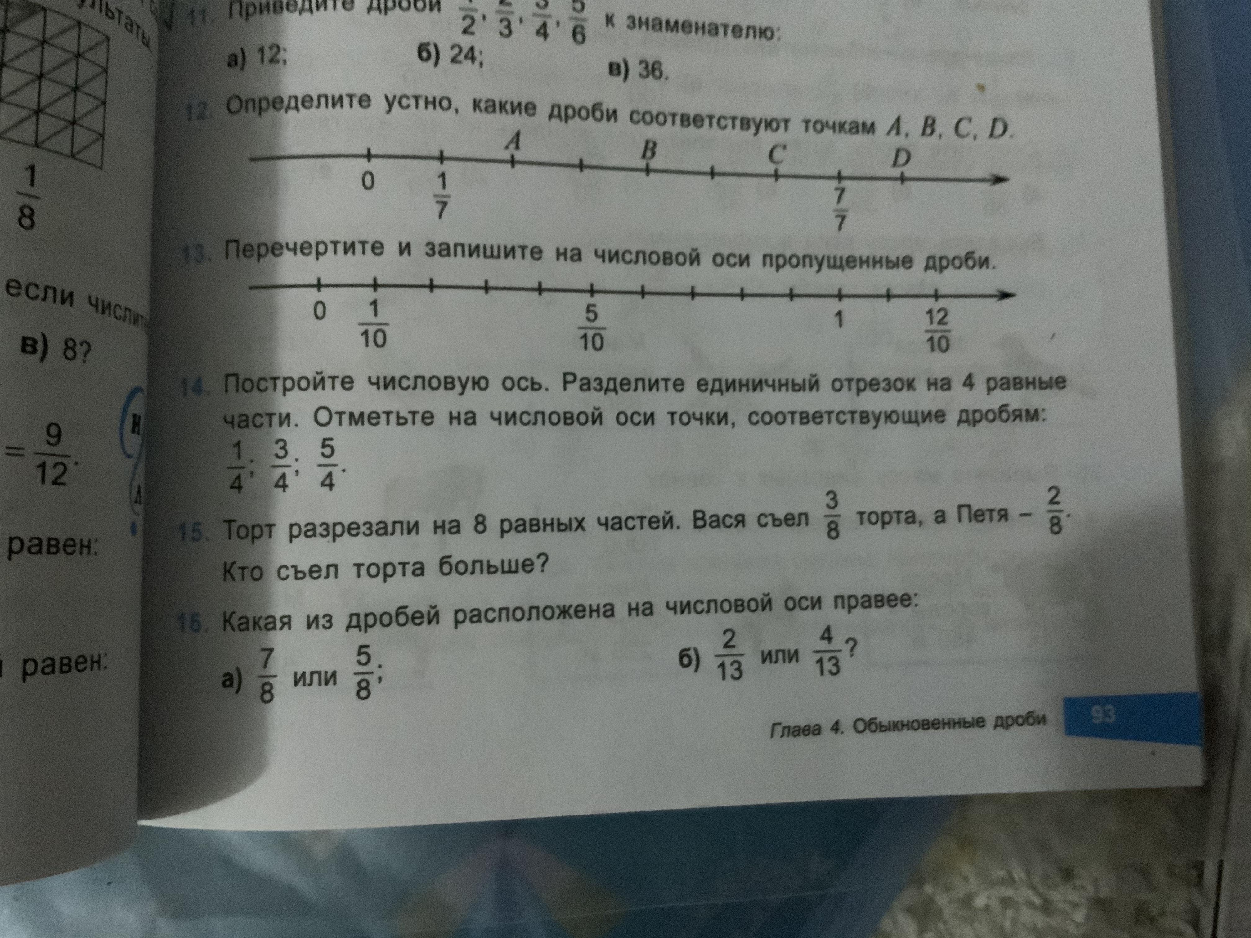 16. Если нас спрашивают какая из дробей правее, значит нам нужно понять, какая из них больше.