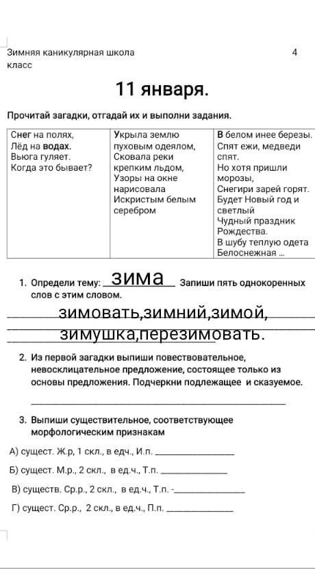 3 задание. А)вьюга . Б)льдом В)одеялом Г)на окне