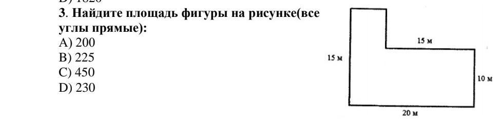 2. 15м * 10м = 150м-S второго прям-ка.