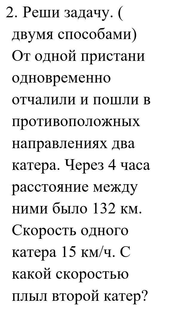 2) 132-60 = 72 (км) — проплыл второй катер за 4 часа.