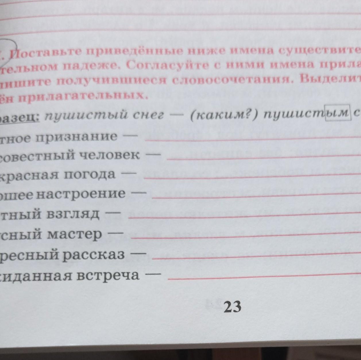 поставьте приведённые ниже имена существительные в творительном падеже согласуйте с ними имена прилагательные и запишите получившиеся словосочетания Выделите окончания имён прилагательных