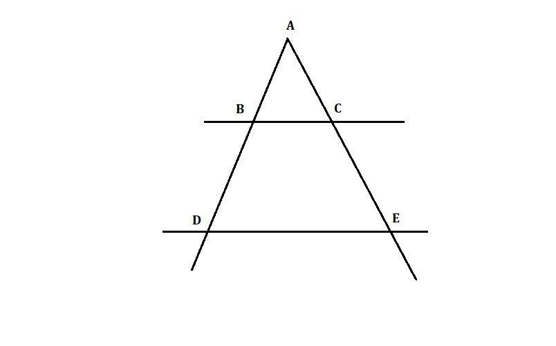 Сторони кута А перетнуті паралельними прямими BC і DE ( точки B і D розміщено на одній стороні кута а, точки C і E на іншій стороні ) . Знайти AD, одній стороні кута, а точки C і E - на іншій стороні якщо AC : AE = 15:33 і BD= 12см помогите срочно