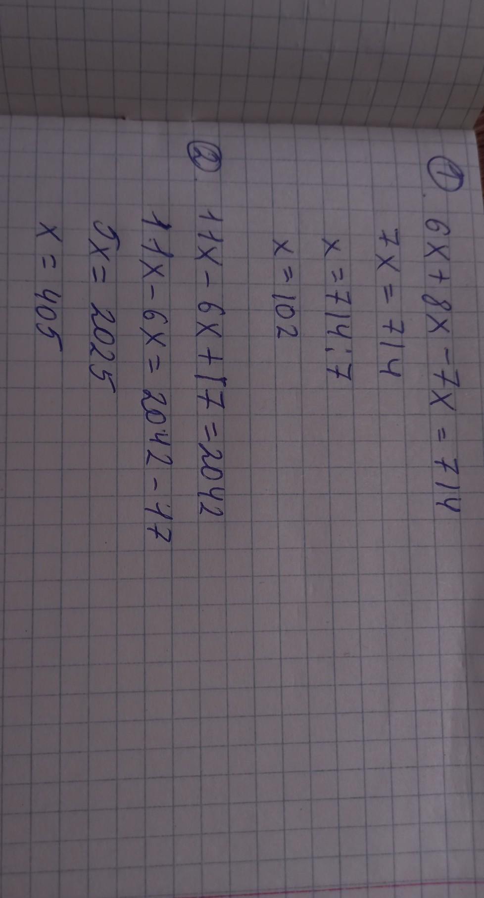 515. Решите уравнение: 1) 6х +8x – 7x = 714; оо 2) 11х - 6х + 17 = 2 042.