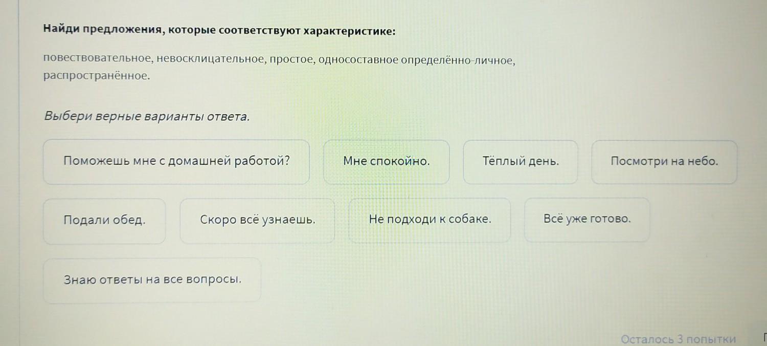 найди предложения, которые соответствуют характеристике.