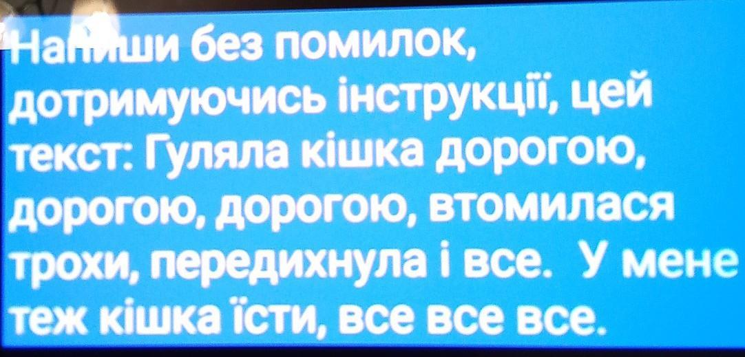Напиши без помилок, дотримуючись iнструкцii , цей текст: Гуляла кiшка по дорогою, дорогою, дорогою, втомилася трохи, передихнула i все. У мене теж кiшка iсти, все все все.