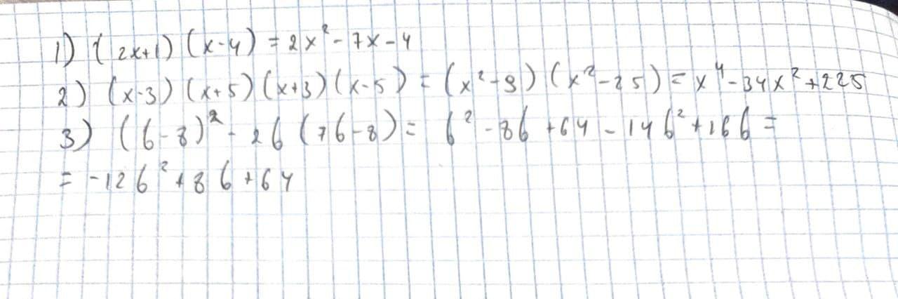 2) (x-3)*(x+5)*(x+3)*(x-5);