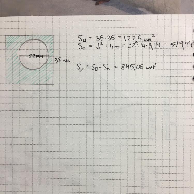 Sз.ф.=Sкв-Sкр=1225-121π мм²