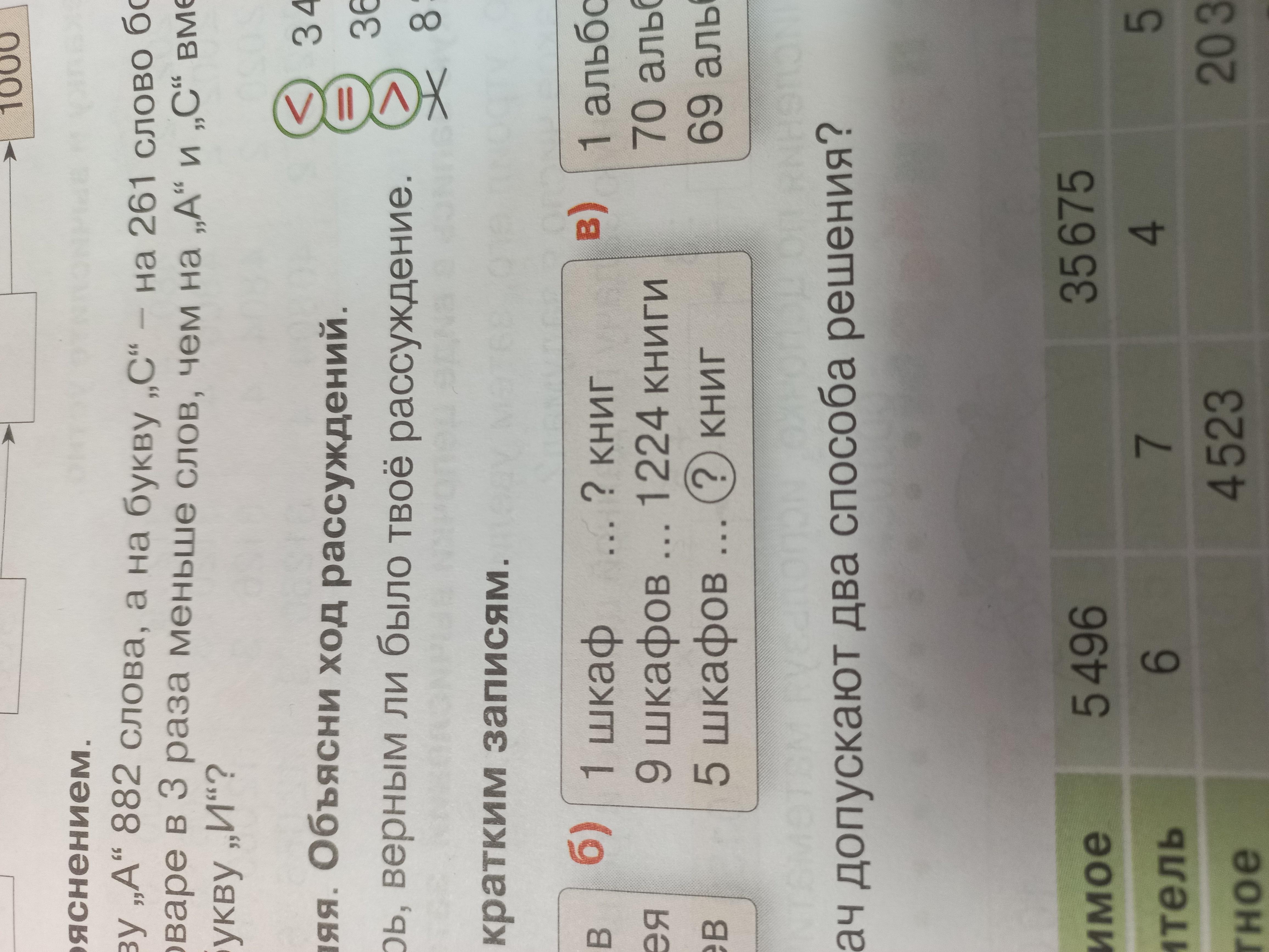 В 9 шкафах 1224 книги, а в 5 шкафах неизвестно. Сколько книг в 5 таких же шкафах? А сколько книг в 1 таком же шкафу?